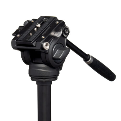 Компактная и легкая 2D-видеоголовка из алюминиево-магниевого сплава с жидкостным демпфированием помогает проводить плавные горизонтальные (360º) и вертикальные (-75º…+90º) панорамирования.