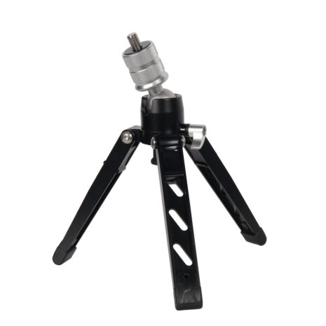 Устойчивый металлический мини-штатив с шаровой головкой и резиновыми ножками против скольжения создаёт надёжную опору для съёмки со стола, приподнятой поверхности или с нижней точки. Его детали с прецизионной точностью изготавливаются на CNC-станках с числовым программным управлением. Для сборки мини-штатива видеоголовка устанавливается на шаровую опору монопода. Усилие вращения шарика в основании мини-штатива регулируется винтовым зажимом и позволяет камере поворачивается на 360° вокруг оси, а паз – наклоняться на 90°.