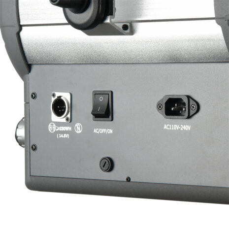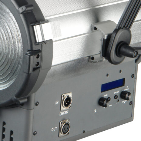 Данный осветительный прибор поддерживает технологию DMX управления. Основное преимущество управлением света по DMX технологии – это возможность программирования любой сложности сценариев освещения и передача сигнала на большие расстояния (до 100 м) без потери мощности. Осветитель оборудован DMX декодером, адрес канала устанавливается кнопками на панели управления и отображается на ЖК дисплее.